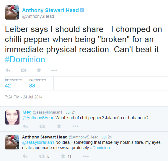 Twitterverse 17 Tuesday Feb 2015 Original size at 569 × 543 ≈ Leave a comment Anthony H. on ep 1×07 Anthony Head shares a trade secret about the rib breaking scene in episode 1×07 Like Loading...